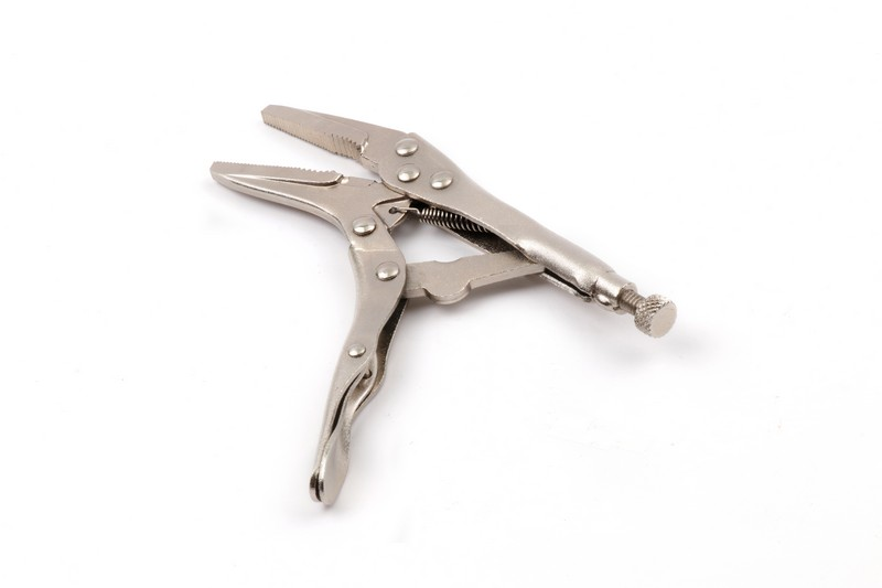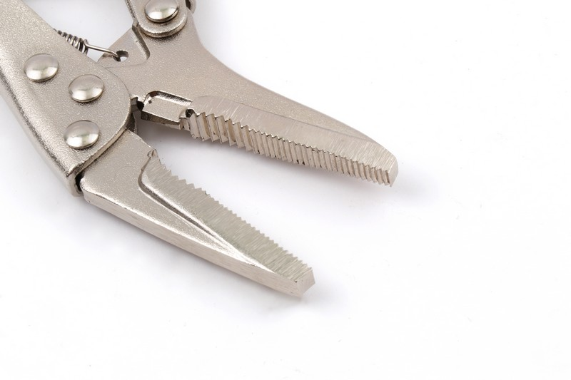 It is a long jaw shaped locking pliers suitable for fixing objects of flat shape such as sheet metal. Adjustable strength can be adjusted by turning the screw at the end of the grip.