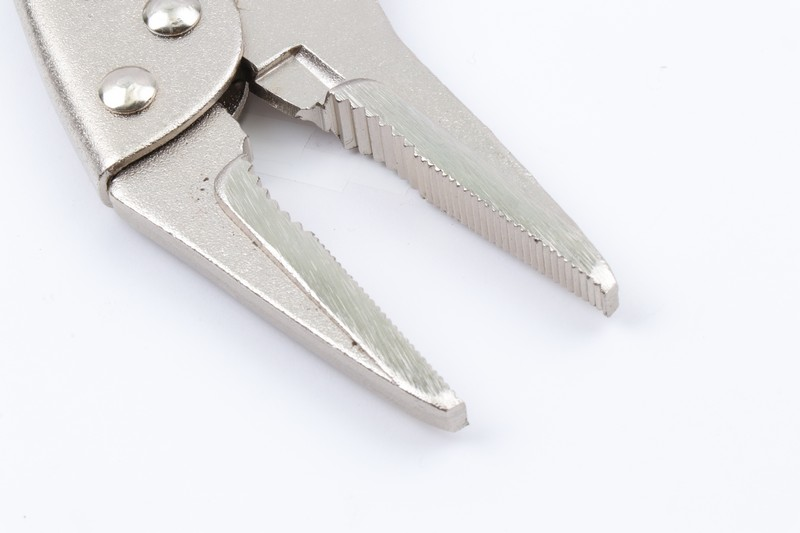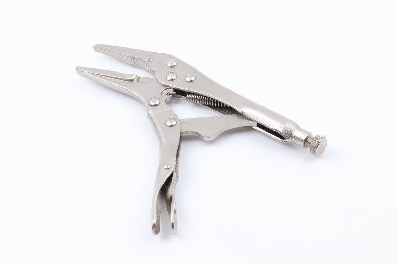 It is a long jaw shaped locking pliers suitable for fixing objects of flat shape such as sheet metal. Adjustable strength can be adjusted by turning the screw at the end of the grip.