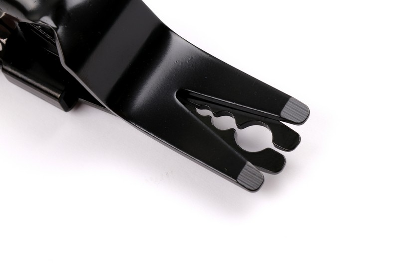 Jaw with grooves for 3/16”, 1/4” and 3/8” tubes and lines.