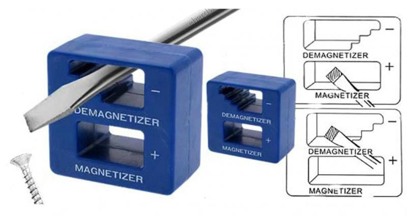 Quickly and easily magnetize small tools so they attract screws or nuts for easy starting and removing.Insert a screwdriver or nutdriver into the hole, pull it out and it's magnetized!