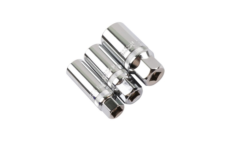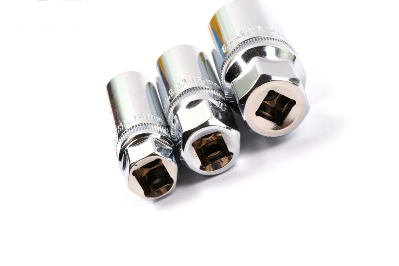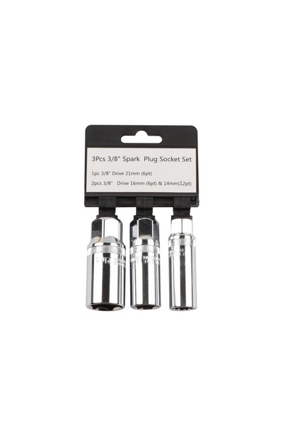 Size:3/8"Dr. 21mm(6pt),3/8"Dr.16mm(6pt) &14mm(12pt). Material: Chrome vanadium. Surface treatment: mirror + knurling