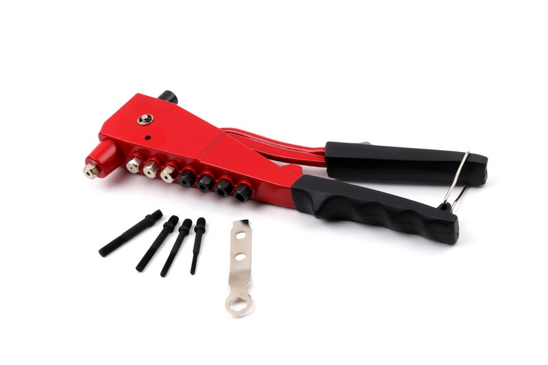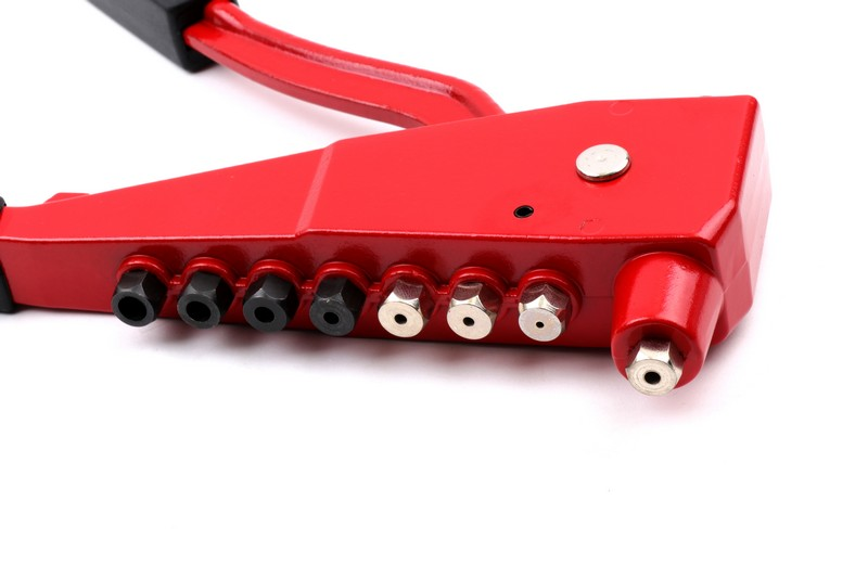 Drop-forge handle aluminum body. For blind rivets 4 nose piece: 2.4mm(3/32"), 3.2mm(1/8"), 4.0mm(5/32"), 4.8mm(3/16"). For nut rivets 4 nose piece: M3, M4, M5, M6.